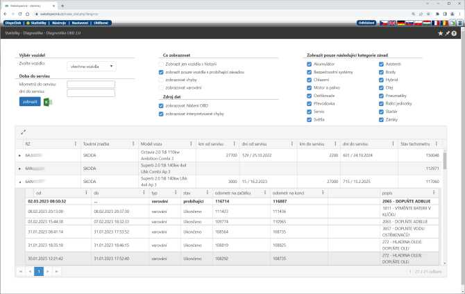 Aplikace WEBDISPEČINK Vám umožňuje sledovat technický stav vozidla. Díky tomu můžete často předejít závažnějším poruchám vozidla.