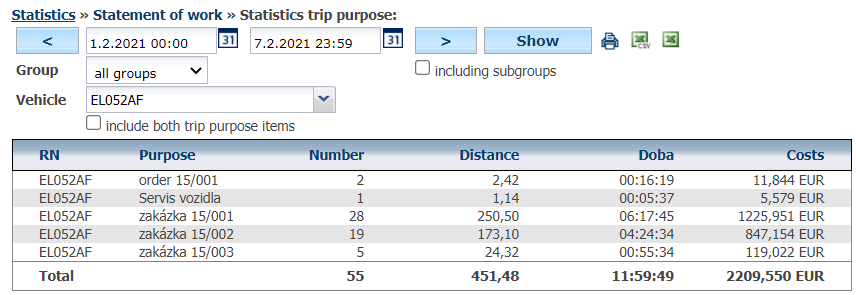 Na podstawie tego możesz w aplikacji Webdispatch łatwo ustalić, do czego pojazdy są najczęściej wykorzystywane oraz obliczyć koszty paliwa.