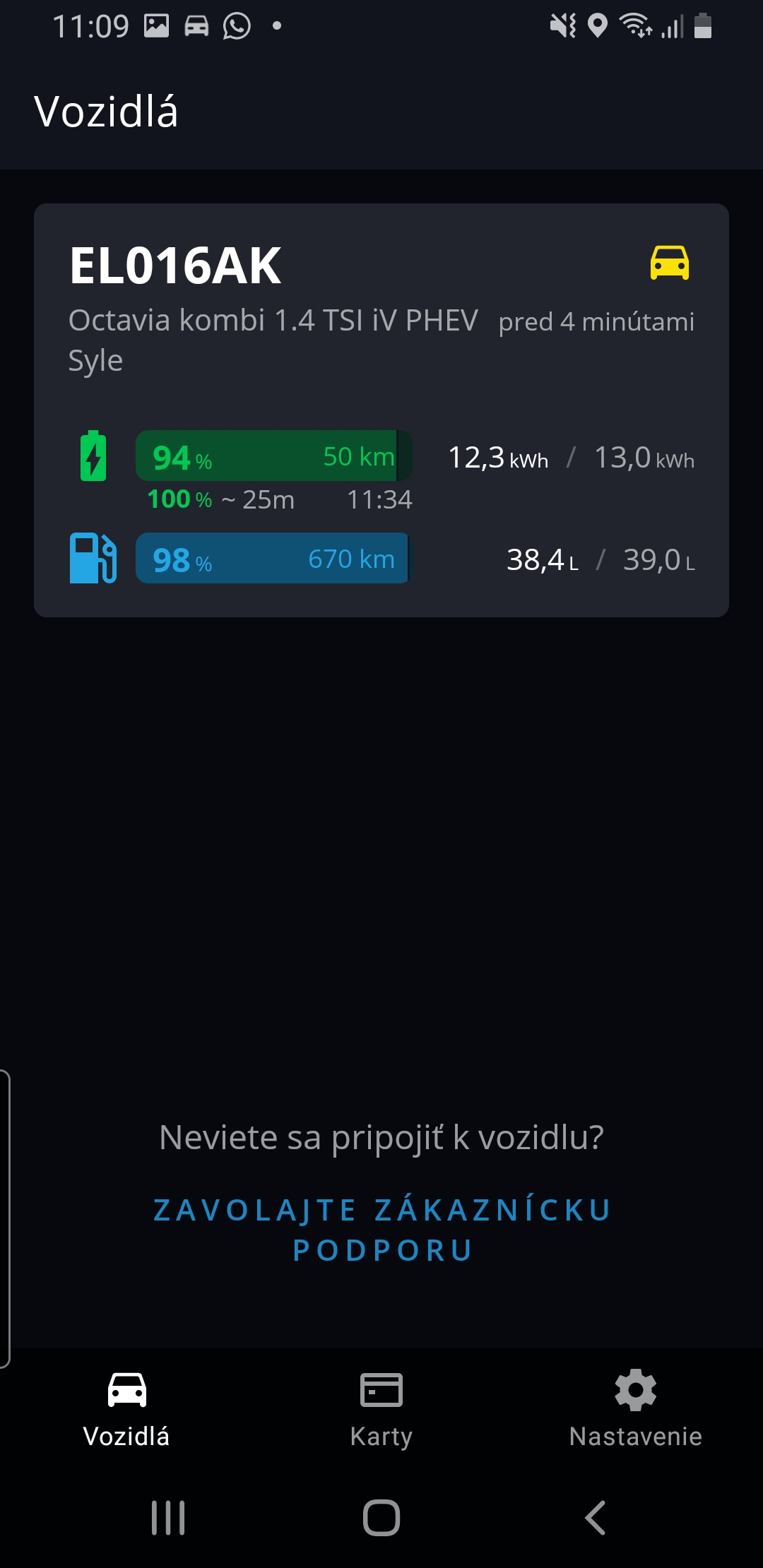 Tiež sú podporované elektromobilné funkcie. Je zobrazovaný stav nabitia batérie (tzv. SOC), dojazd vozidla, prípadne čas do nabitia vozidla na 80% a 100%. Po nabití na tieto úrovne je navyše užívateľ upozornený notifikáciou. Tá prichádza aj pri začiatku a koncu nabíjania. Užívateľ tak má pri elektrických vozidlách, ale aj plug-in hybridoch, možnosť sledovať aktuálny stav nabíjania.