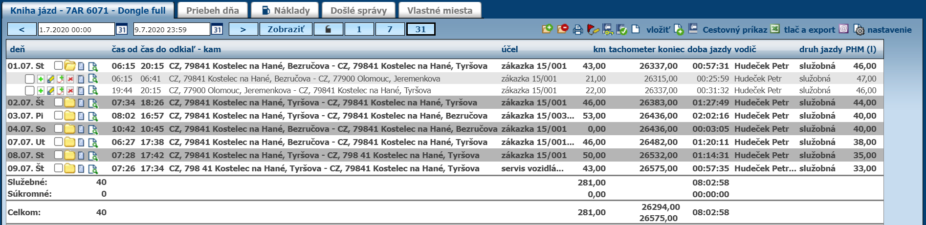 Účely sa potom zapisujú do knihy jázd k jednotlivým jazdám a je tak možné jednoducho deklarovať, napr. kontrolným orgánom, prečo vozidlo konalo danú cestu.