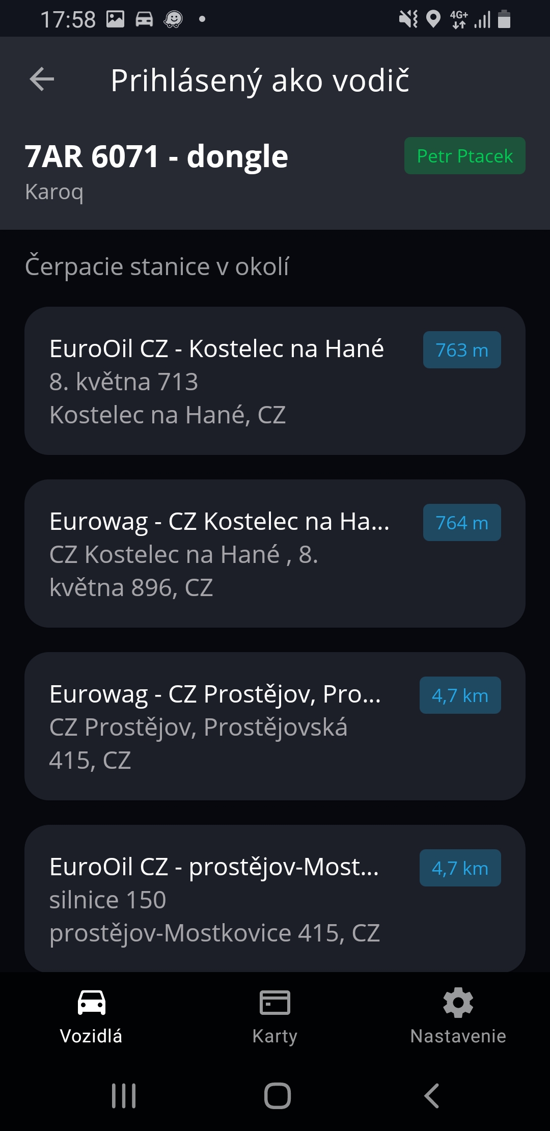 Aplikácia tiež môže pomôcť vodičovi nájsť najbližšiu odporúčanú čerpaciu alebo dobíjaciu stanicu. A pri neznalosti PIN k tankovacej karte si ho vodič môže jednoducho zobraziť.