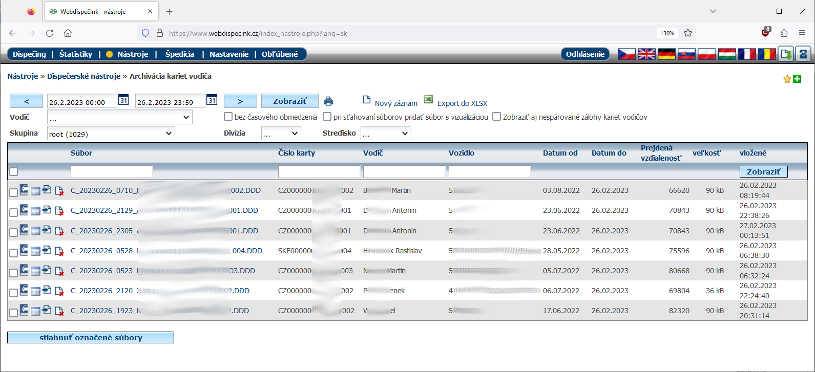 A takto súbory s príponou DDD vyčítané z karty vodiča vložené do digitálneho tachografu