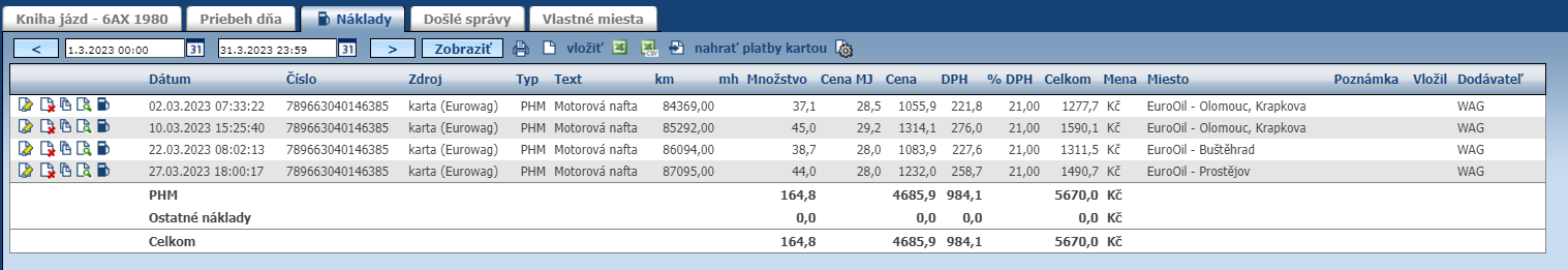 Klienti, ktorí využívajú karty našej spoločnosti EUROWAG, nemusia súhlas na poskytovanie dát udeľovať, postačí iba založiť kartu EUROWAG vo Webdispečingu (Nastavenie/PHM/Tankovacie karty). Náklady sa potom začnú importovať automaticky.