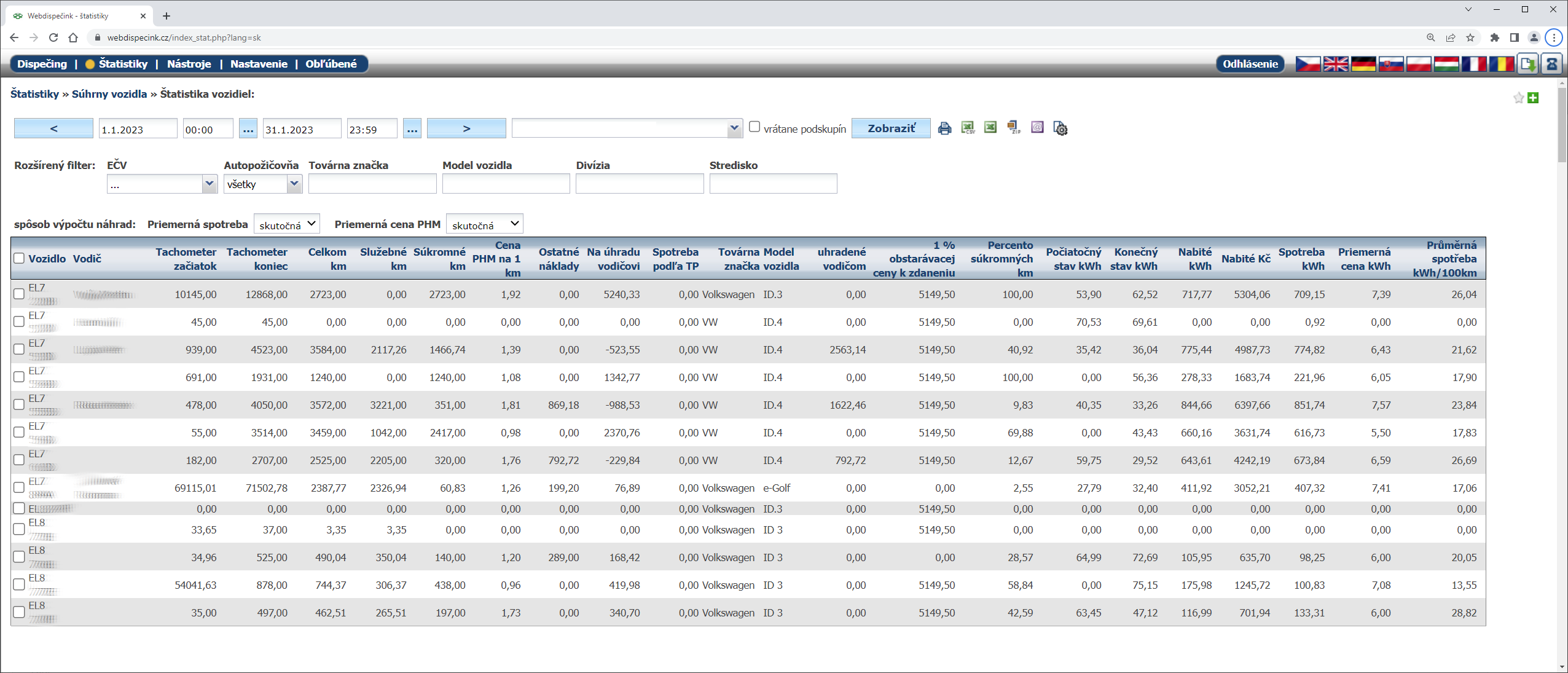 - Pokročilé štatistiky pre užívateľov elektromobilov (mesačné vyúčtovanie pre BEV aj PHEV, zrážky za súkromné km, náhrady za domáce dobíjanie u vodiča)