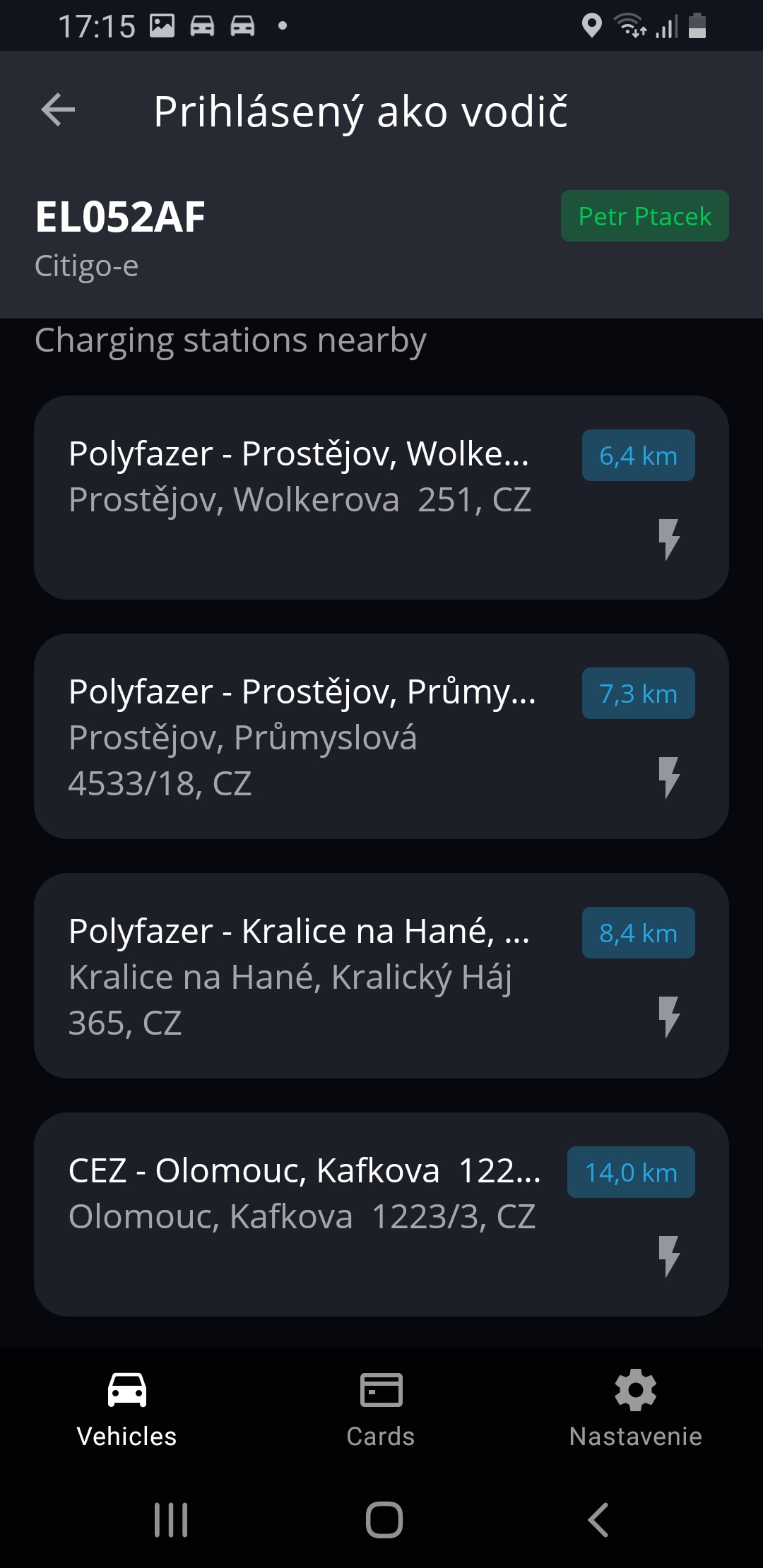 Aplikácia tiež spolupracuje s dobíjacou smernicou a navrhuje vodičovi najbližšie možnosti nabíjania, ktoré odporučil fleetový manažér.