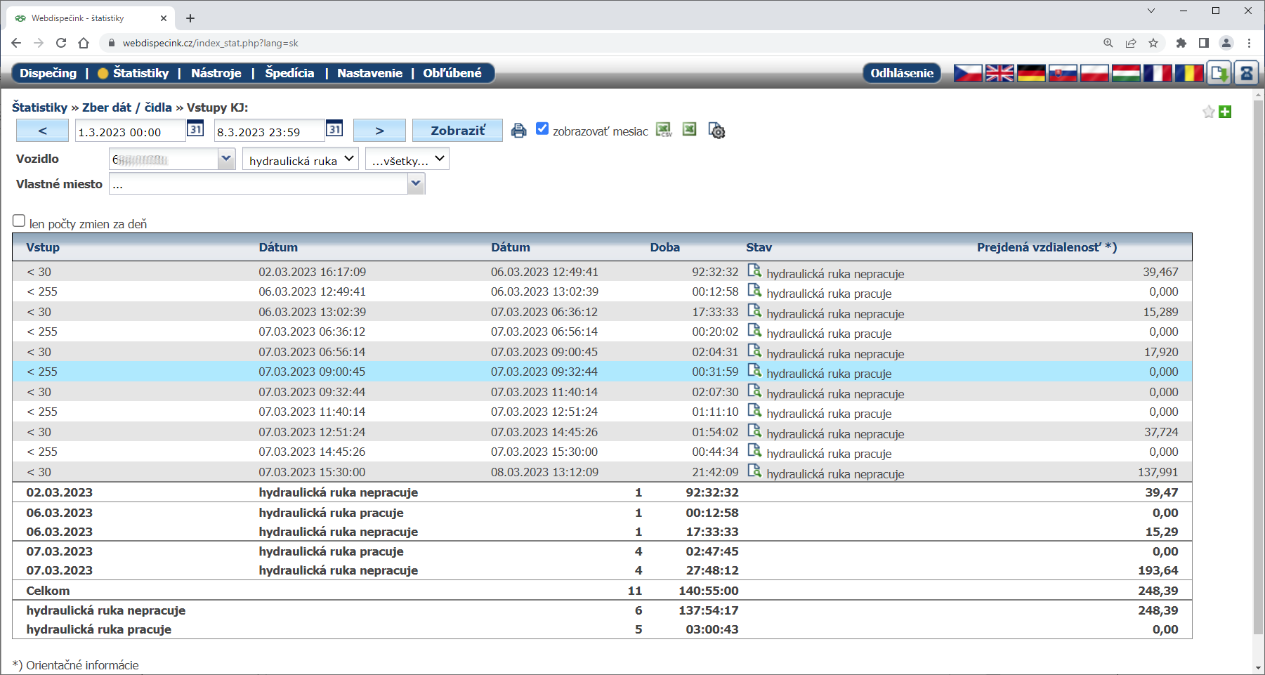 Aplikácia WEBDISPEČINK je s výhodou tiež nasadzovaná na rôzne stavebné či pracovné stroje. To prináša prehľad o: